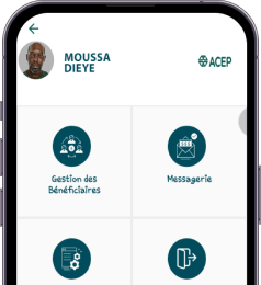 Permet d’initier un transfert de son compte ACEP vers un bénéficiaire (qui peut ne pas être client de ACEP). Ce dernier peut faire un retrait avec le code de retrait qui lui a été partagé.