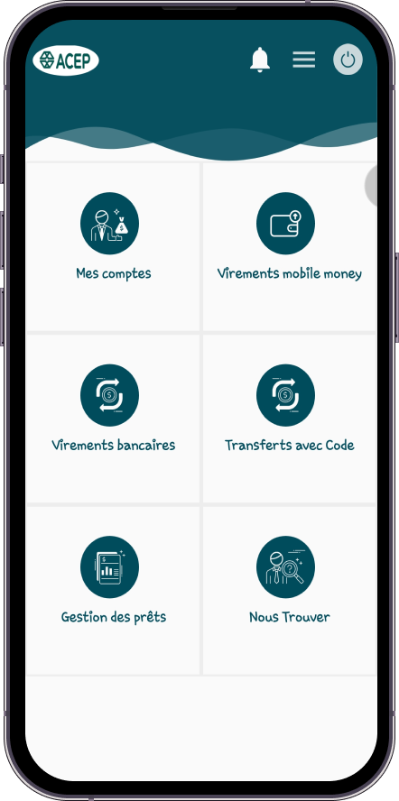 L'application Sama ACEP simplifie la gestion financière en permettant la consultation des comptes, l'historique des transactions, les virements bancaires, et les transferts avec code.